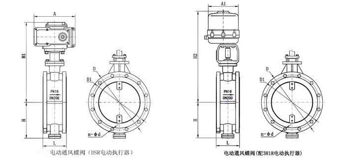 | H1 | 根據(jù)電動通風蝶閥(fá)所需力矩而定(ding),配置電動執行(hang)器不同,外形尺(chi)寸也不相㊙️同✉️,詳(xiáng)情請咨詢公司(si)技術部! | |||||||||||||||||